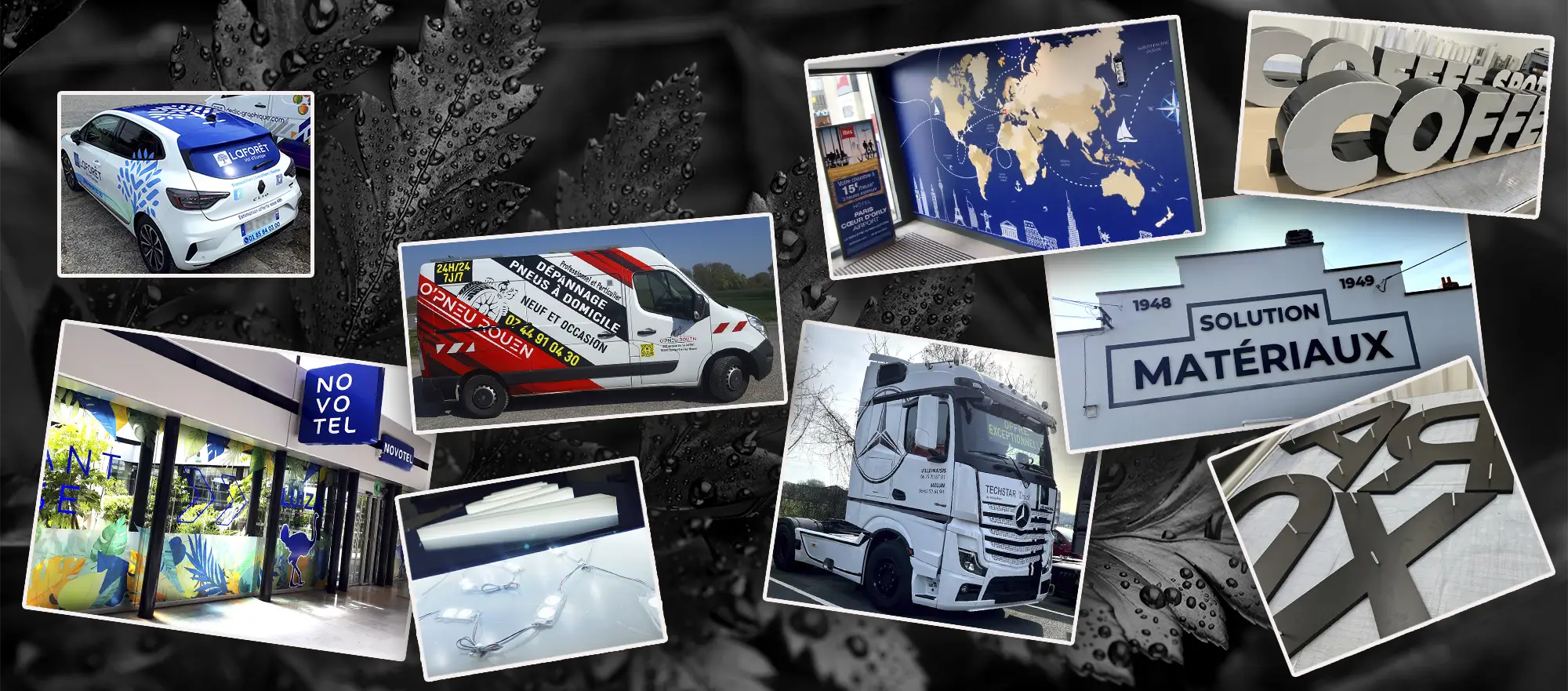 Notre domaine d’activité est centré sur toutes les signalétiques (intérieurs et extérieurs), la réalisation d’enseignes, d’habillage de vitrines, le marquage de véhicules (du petit utilitaire à la flotte de poids lourd), nous réalisons également toutes sortes d’adhésifs (petits et grands formats).